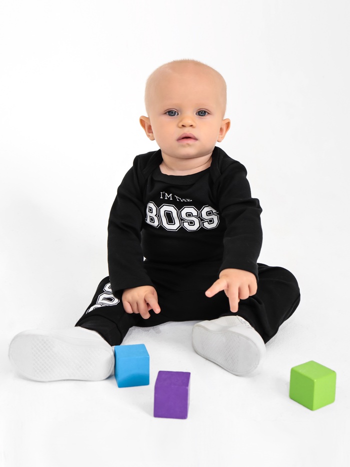 Боди детское с длинным рукавом Крошка Я "Little Boss", рост 80-86 см, цвет чёрный — Характеристики