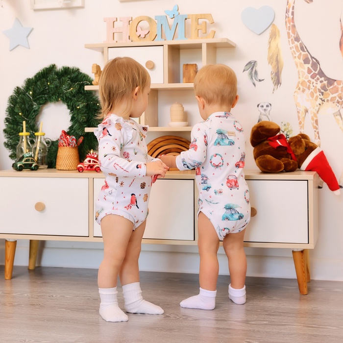 Боди детское с длинным рукавом MINAKU "New Year's cars", цвет белый, рост 74-80 см — Характеристики
