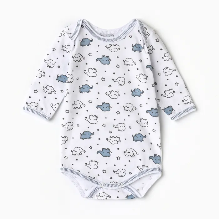 Боди детское с длинным рукавом, цвет белый/слоны, рост 62 — Характеристики