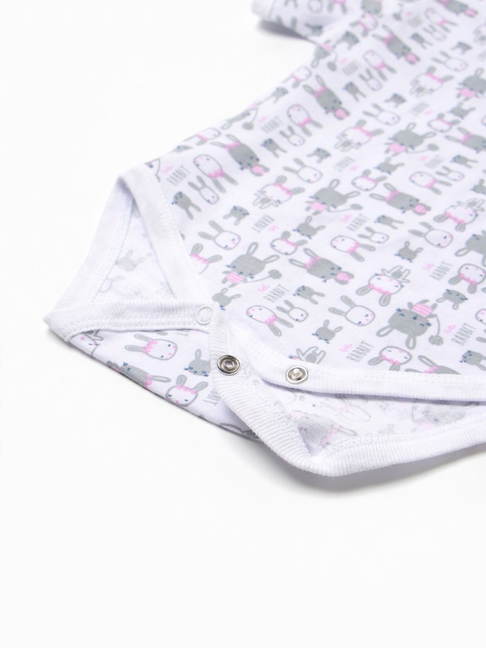 Боди детское с коротким рукавом "Зайки", цвет белый/розовый, рост 68 — Характеристики