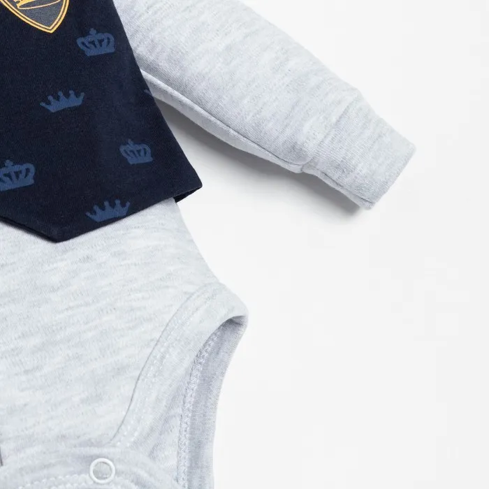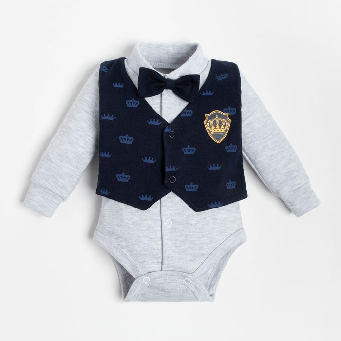 Боди Крошка Я "Костюм корона", синий/серый, рост 80-86 см