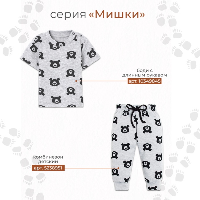 Боди Крошка Я «Мишки», рост 62-68 см, серое — Характеристики