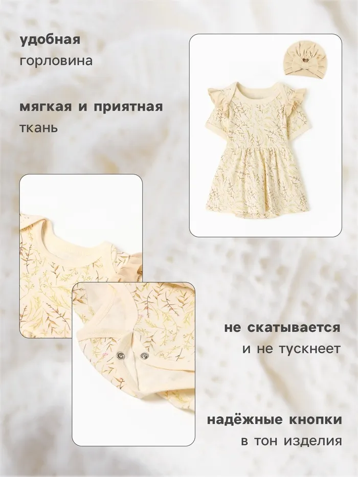 Боди-платье с шапочкой детское MINAKU "Nature", цвет бежевый, рост 62-68 см — Характеристики