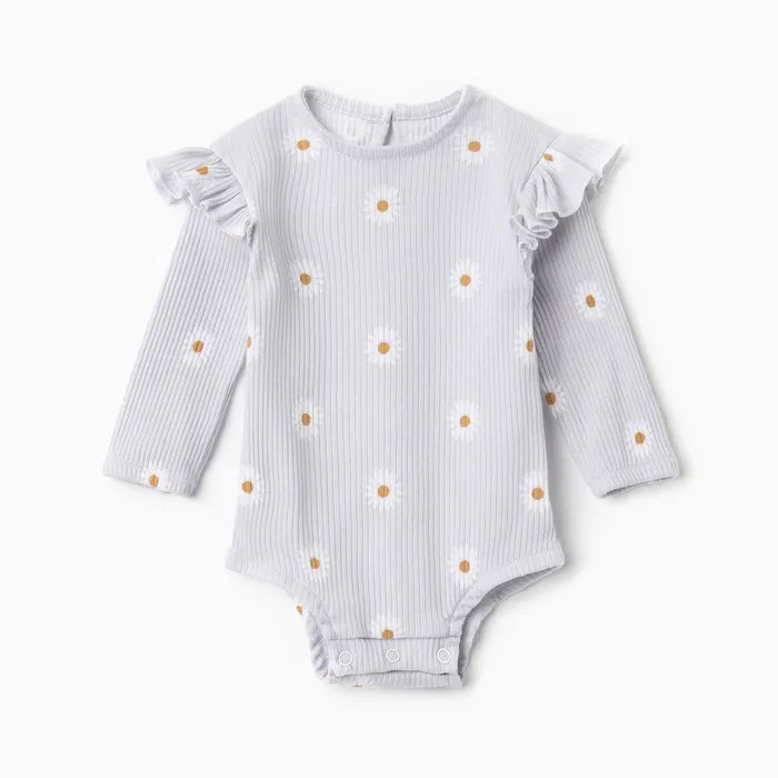 Боди с дл. рукавом Крошка Я Ромашка, рост 62-68 см, серый