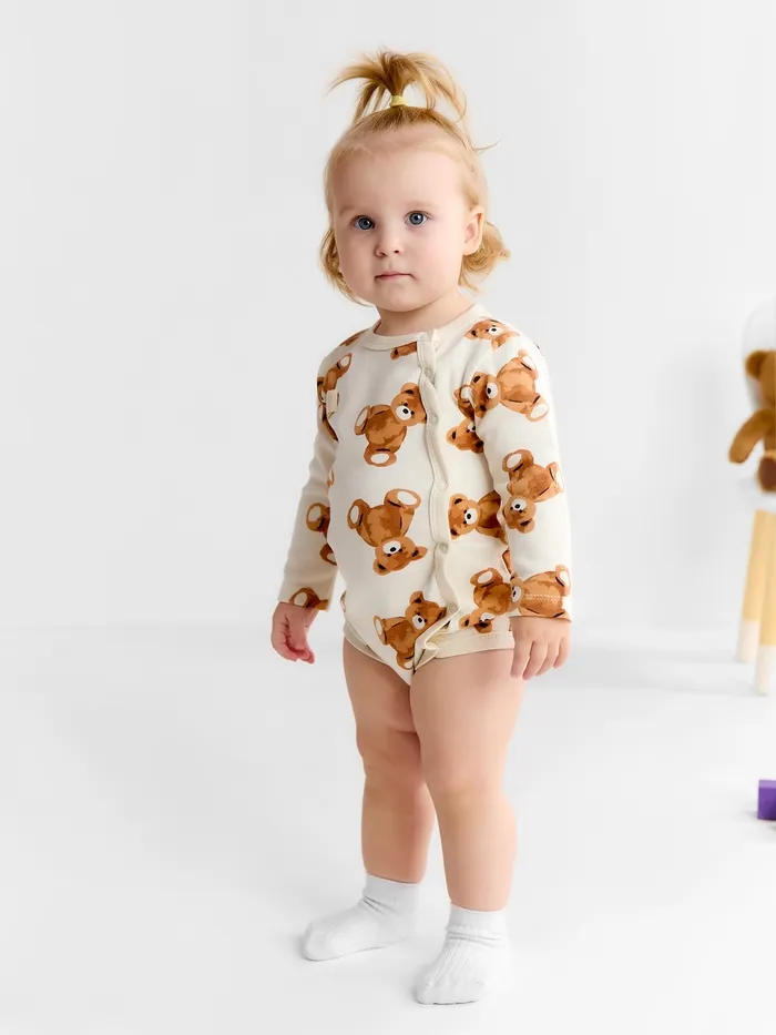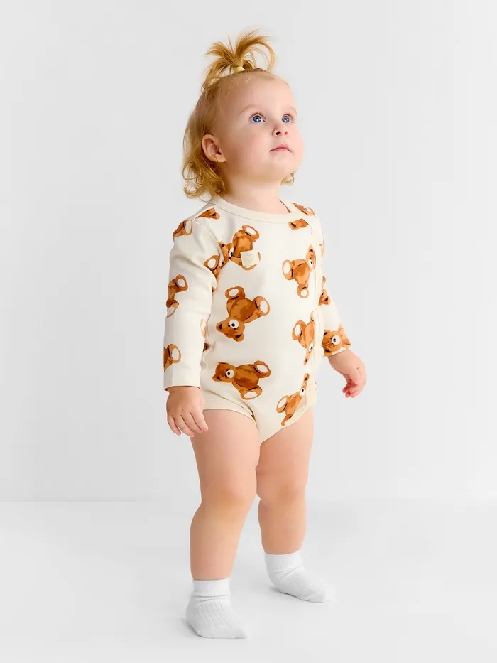 Боди с длинным рукавом Крошка Я "Медвежата", рост 74-80, бежевый