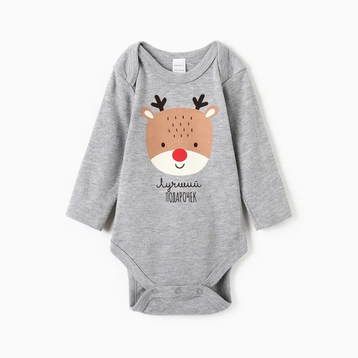 Боди с длинным рукавом Крошка Я "Merry Xmas", рост 68-74 см, цвет серый — Характеристики