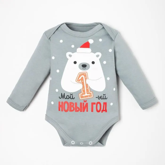 Боди с длинным рукавом Крошка Я "Первый НГ", рост 74-80 см, серый — Характеристики