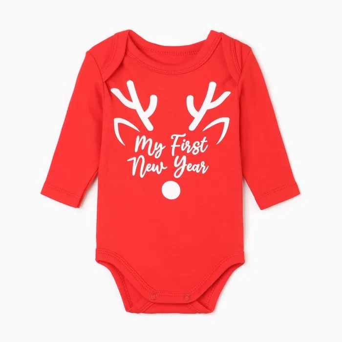 Боди с длинным рукавом Крошка Я Reindeer, рост 74-80, красный