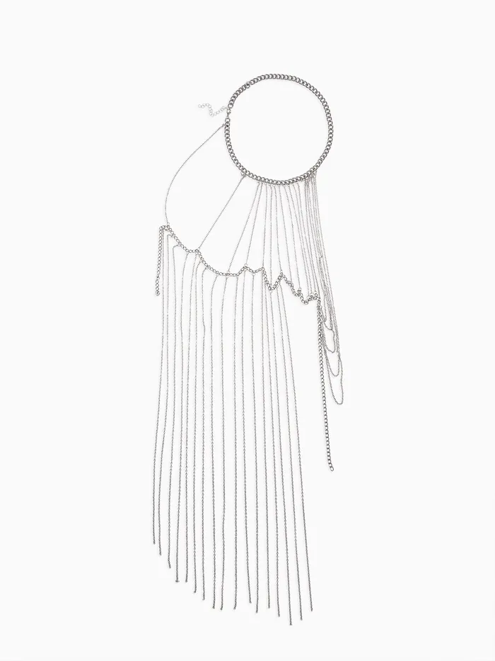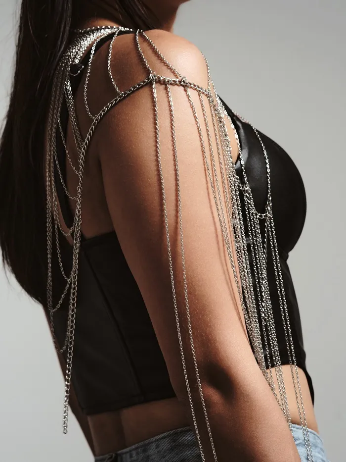 Этот бодичейн не только привлекает внимание, но и подчеркивает вашу индивидуальность, идеально сочетаясь с различными нарядами — от повседневных до вечерних. Его универсальный дизайн позволяет носить его как на одежде, так и на голом теле, создавая эффектный акцент.