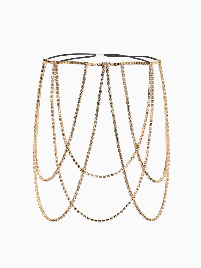 Запечатлейте очарование Востока с элегантным бодичейном «Ярусы», исполненном в стиле шейха. Преимуществом этого аксессуара является его сверхэластичная сетка, украшенная множеством крошечных страз, нанесённых специальной техникой «ажурной вышивки». Подобный рисунок не только выглядит оригинально, но и создает ощущение дороговизны и изысканности.