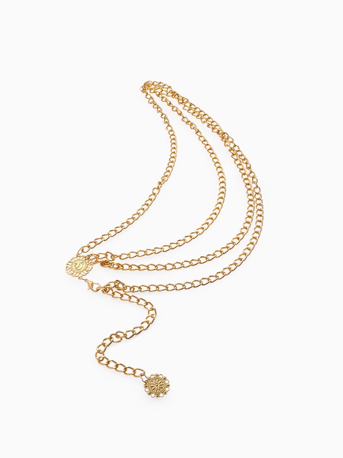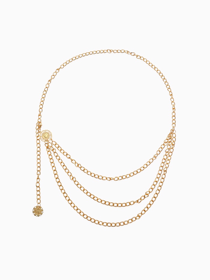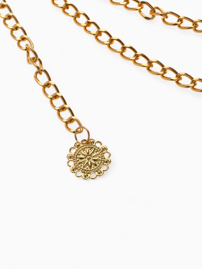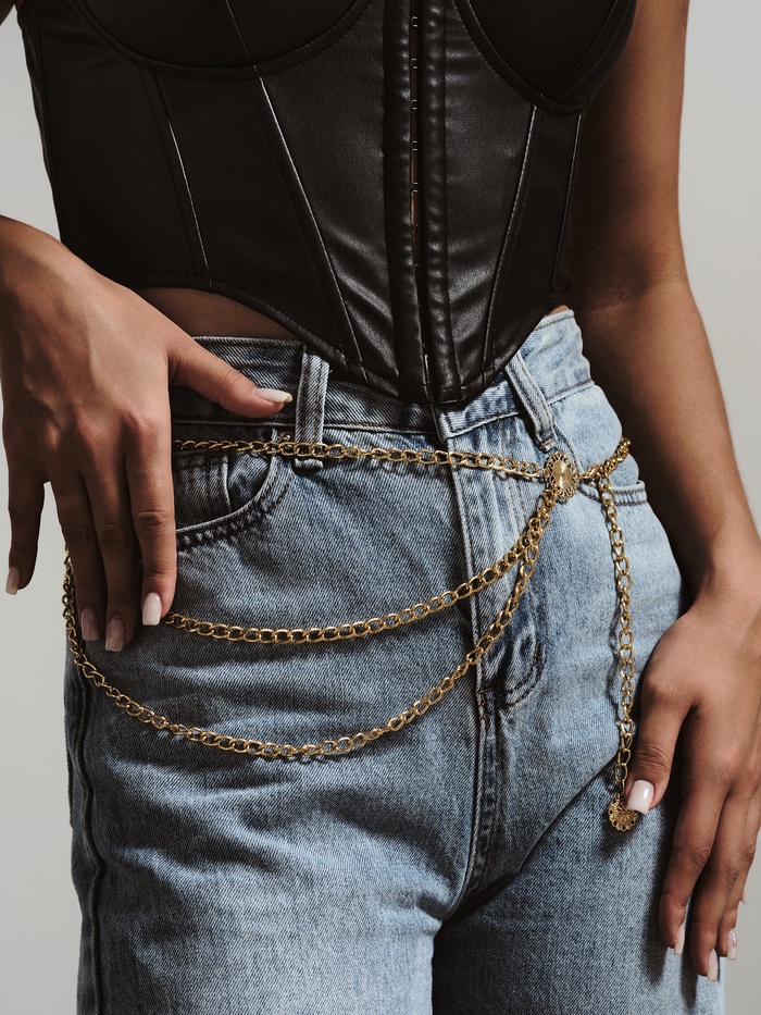 Особенность этой модели заключается в уникальной многоуровневой конструкции, придающей образу утончённый шарм и оригинальность. Цепочка выполнена таким образом, что способна выгодно подчеркнуть линию талии, создавая стильный акценты, привлекающие внимание окружающих.