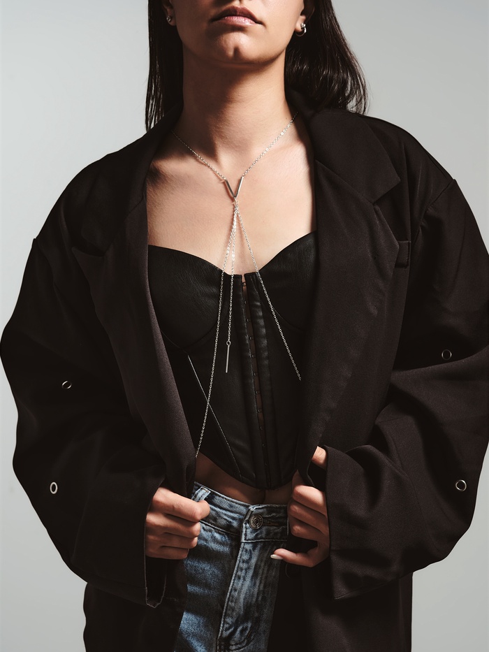 Дизайн цепочки продуман так, чтобы гармонично сочетаться с разными стилями одежды — от повседневного до вечернего. Универсальный серебристый цвет обеспечивает лёгкую интеграцию в любой гардероб, подчёркивая индивидуальность и утончённый вкус.