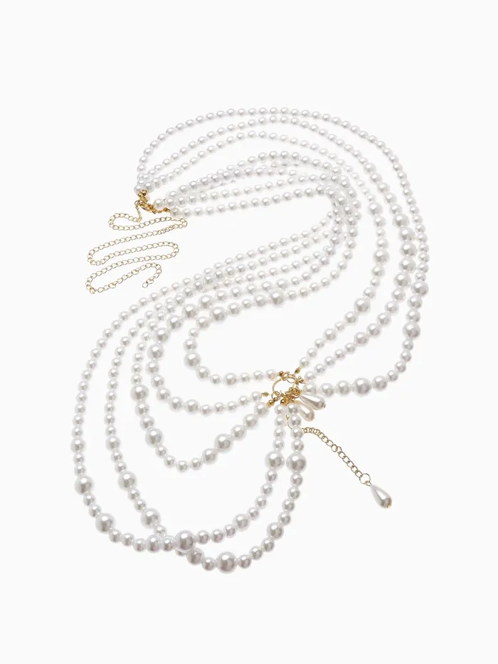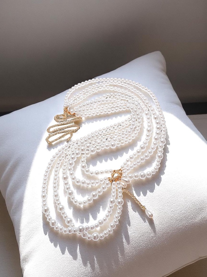 Бодичейн женская «Жемчужина» на талию, белый в золоте — Характеристики