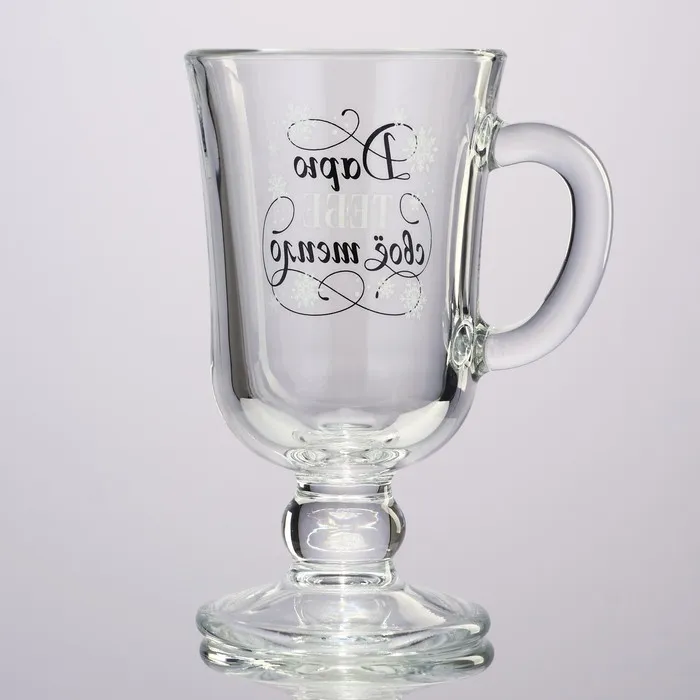 Бокал изготовлен из качественного и прочного стекла, имеет оригинальную форму и надпись. Такая посуда украсит Вашу сервировку и станет изюминкой праздничного стола.