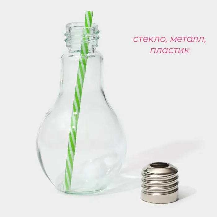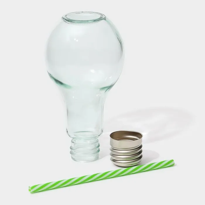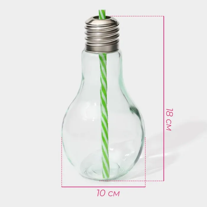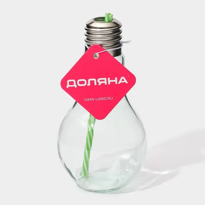 Бокал для коктейля Доляна «Лампочка», 500 мл, с трубочкой, откручивающаяся крышка, стекло, прозрачный — Характеристики