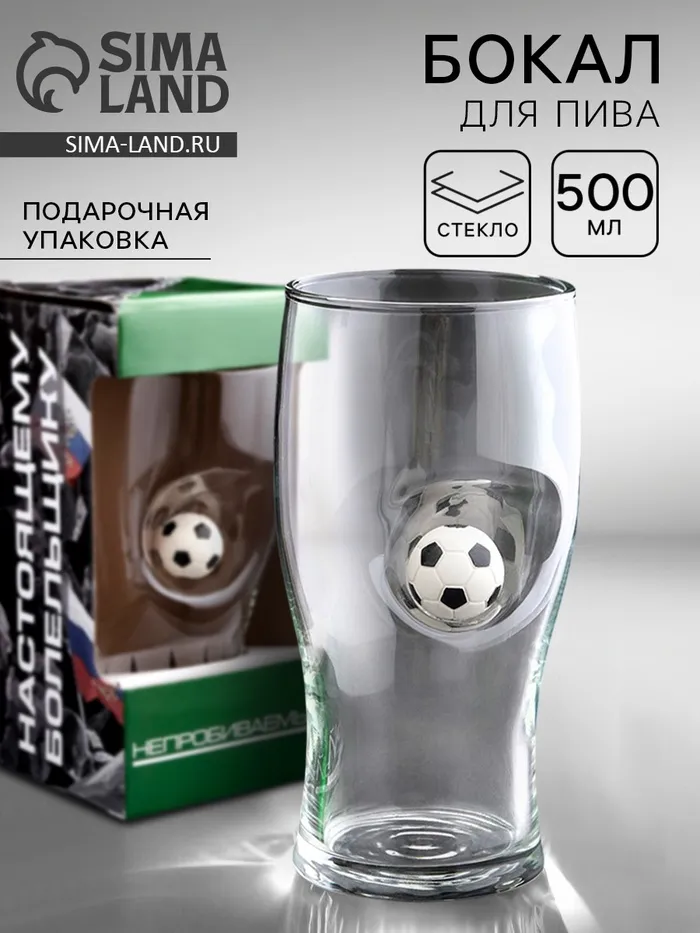 Бокал для пива с футбольным мячом «Непробиваемый», 500 мл — Характеристики