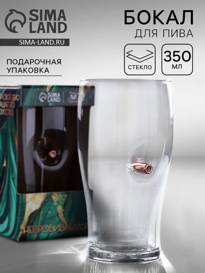 Бокал для пива с пулей «Непробиваемый», 350 мл — Характеристики