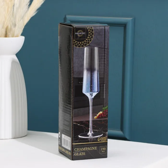 Бокал для шампанского Magistro «Мерцание», 190 мл, 7×24.5 см, стекло, синий — Характеристики