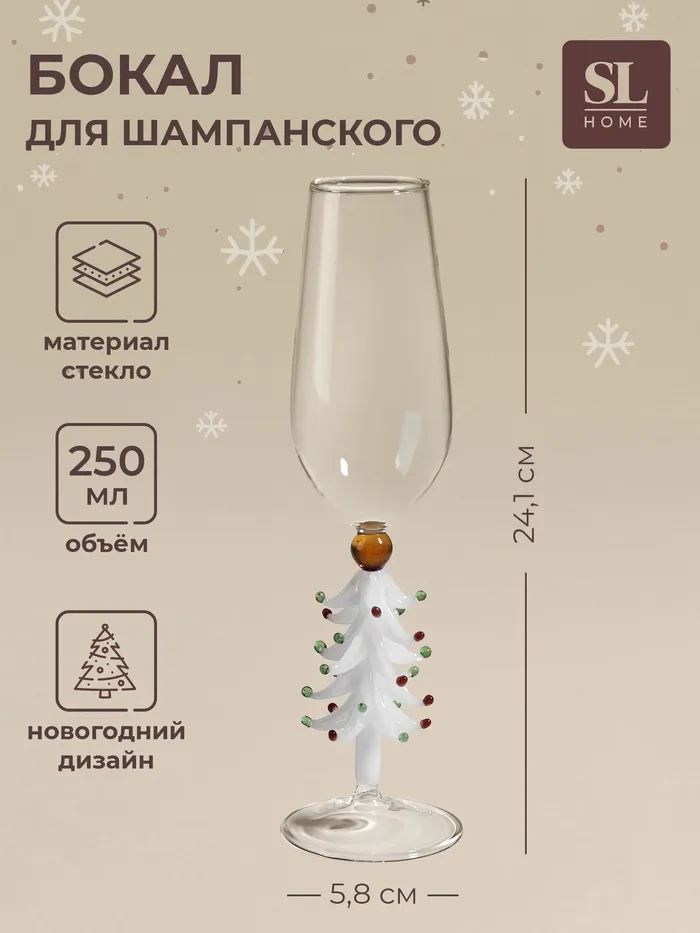 Бокал для шампанского SL-Home «Ёлочный», 250 мл, 5.8×24.1 см, стекло, прозрачный, белый — Характеристики