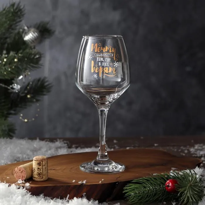 Бокал для вина новогодний «Мечты сбываются», 350 мл