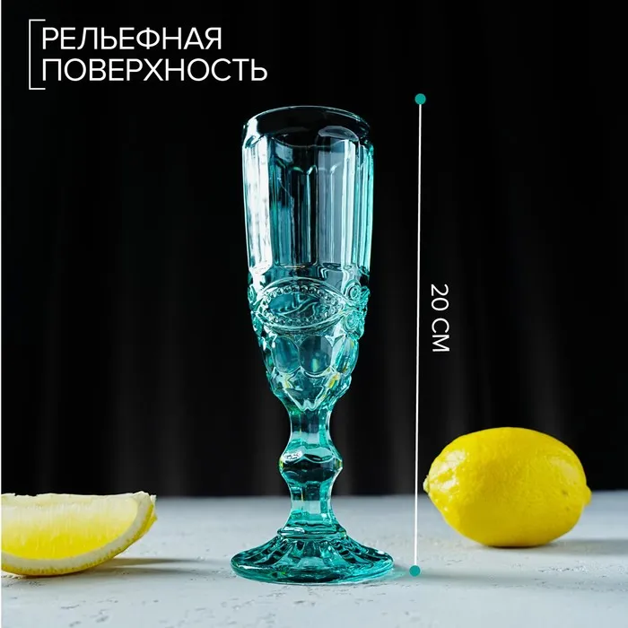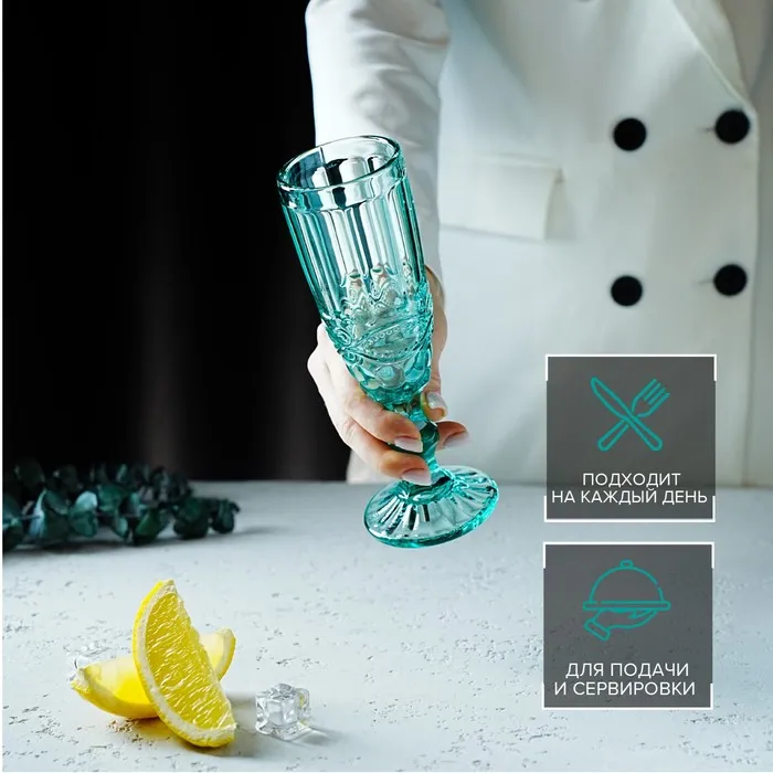 Бокал из стекла для шампанского Magistro «Ла-Манш», 160 мл, 7×20 см, цвет бирюзовый — Характеристики