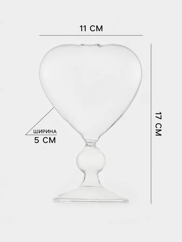 Бокал идеально подходит для подачи коктейлей и других напитков. Его гладкая текстура и прозрачный дизайн подчеркнут благородство напитка, а форма в виде сердца украсит романтический вечер.