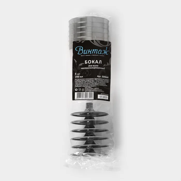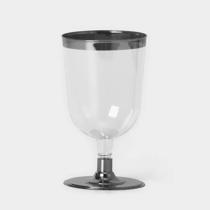 Бокал одноразовый для вина «Кристалл», 200 мл, пластик, с металлизированными каемками, прозрачный — Характеристики