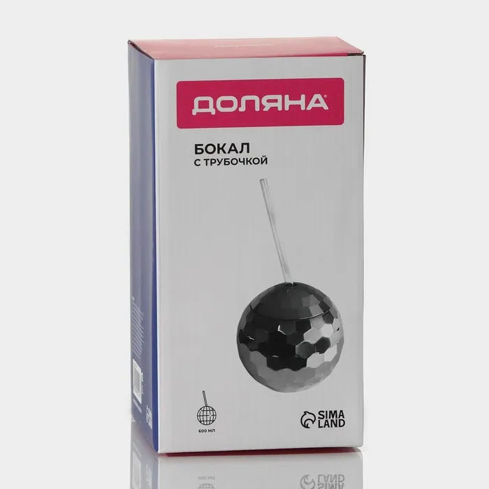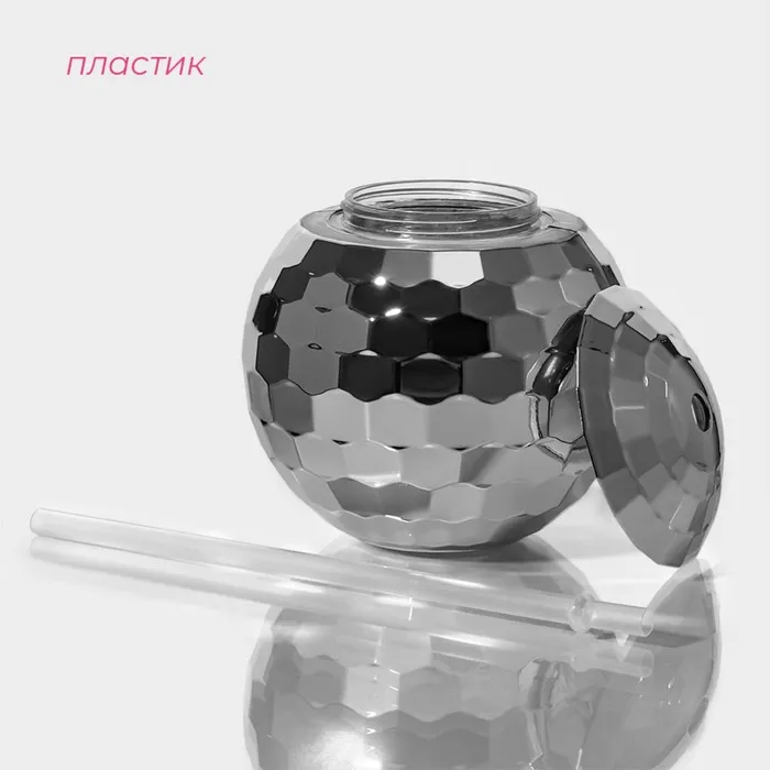 Бокал с крышкой и трубочкой Доляна «Сияние», 600 мл, 11×11×10,5 см, цвет серебряный — Характеристики