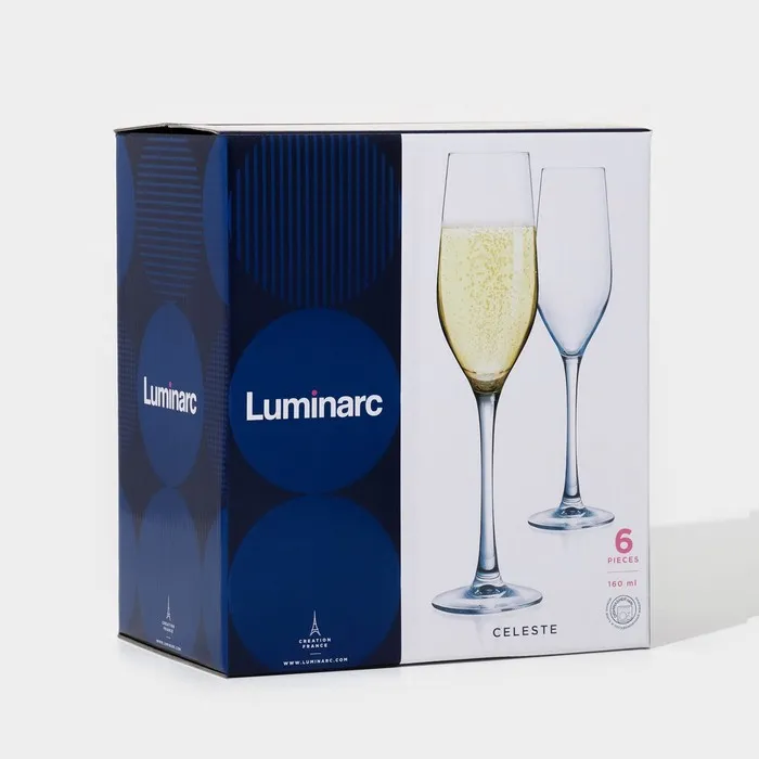 Бокалы для шампанского Luminarc Celeste, 160 мл, стекло, прозрачные, набор 6 шт — Характеристики