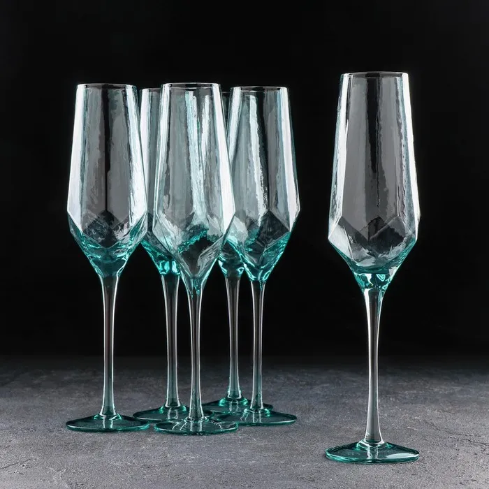Бокалы для шампанского Magistro «Дарио», 180 мл, 7×27.5 см, набор 6 шт., стекло, изумрудные — Характеристики