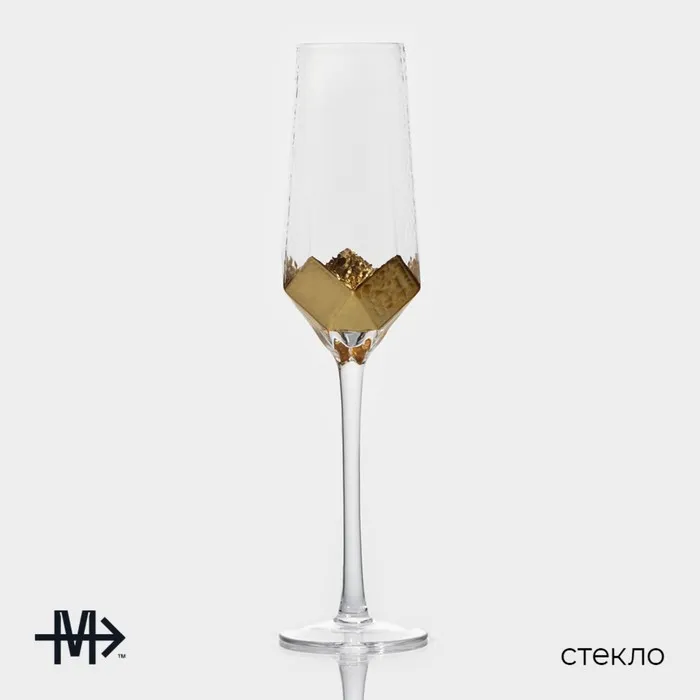 Бокалы для шампанского Magistro «Дарио», 180 мл, 7×27.5 см, набор 6 шт., стекло, золотые — Характеристики