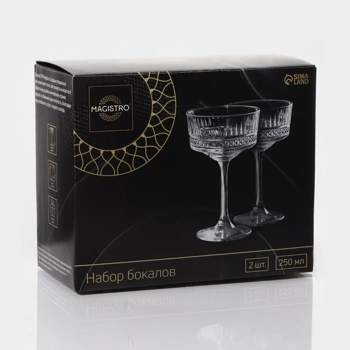 Бокалы для шампанского Magistro «Элизиум», 250 мл, 10.2×16.5 см, стекло, набор 2 шт., прозрачные — Характеристики
