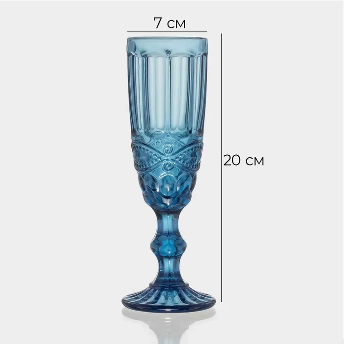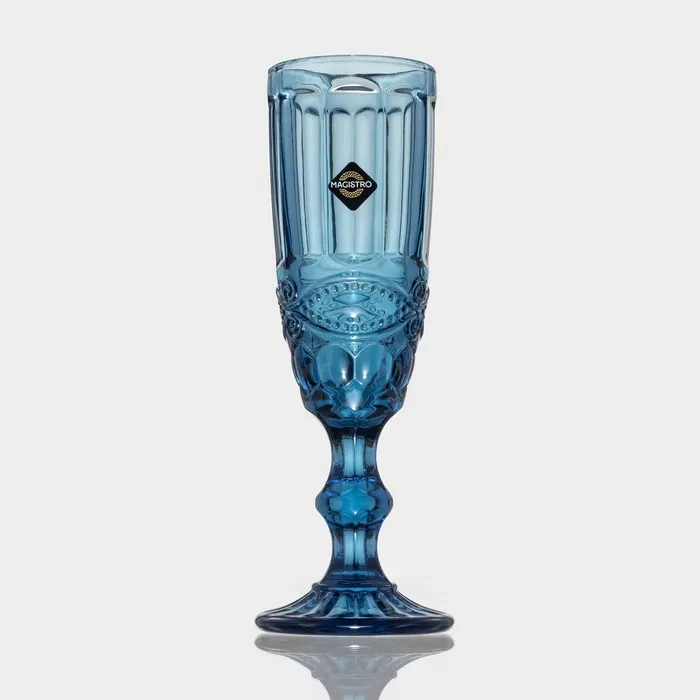 Бокалы для шампанского Magistro «Ла-Манш», 160 мл, 7×20 см, стекло, набор 6 шт., синие — Характеристики