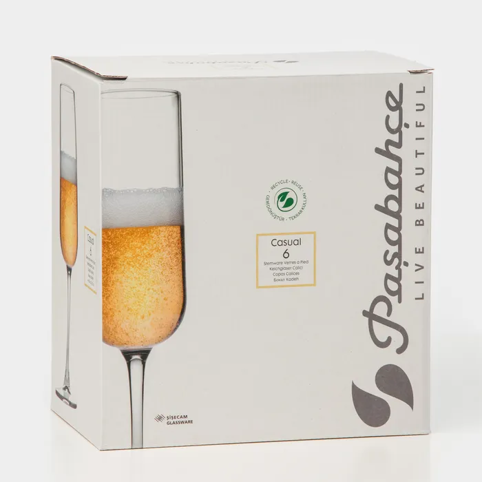 Бокалы для шампанского Paşabahçe CASUAL, 165 мл, набор 6 шт., стекло, прозрачные — Характеристики