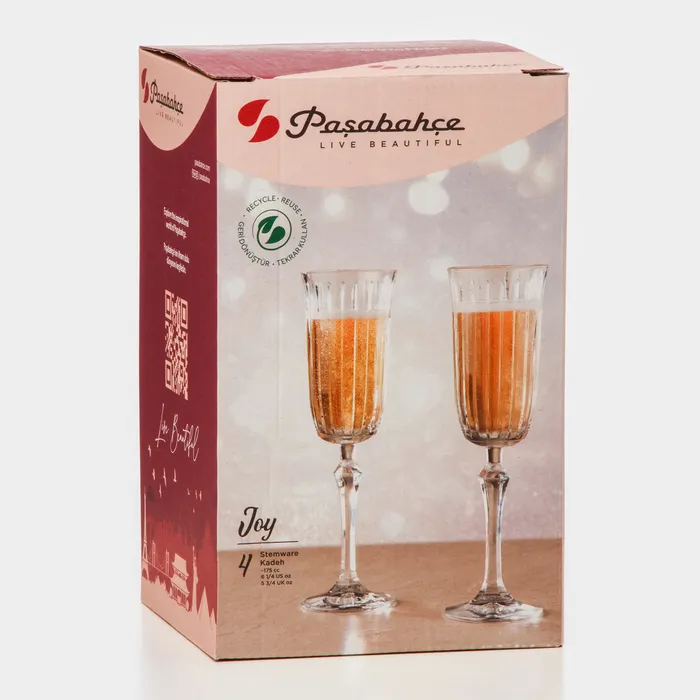 Бокалы для шампанского Paşabahçe JOY, 175 мл, набор 4 шт., стекло, прозрачные — Характеристики