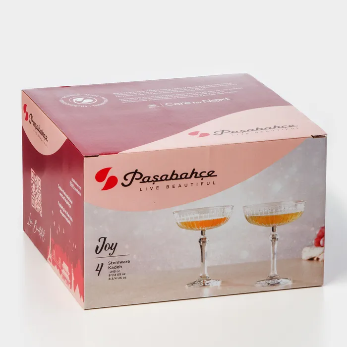 Бокалы для шампанского Paşabahçe JOY, 245 мл, набор 4 шт., стекло, прозрачные — Характеристики