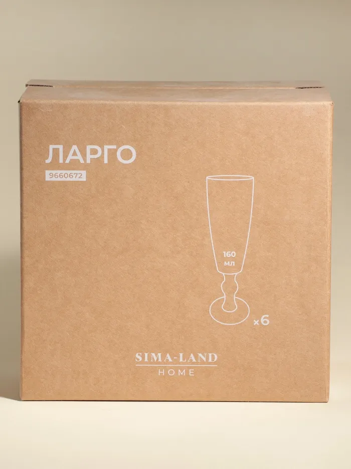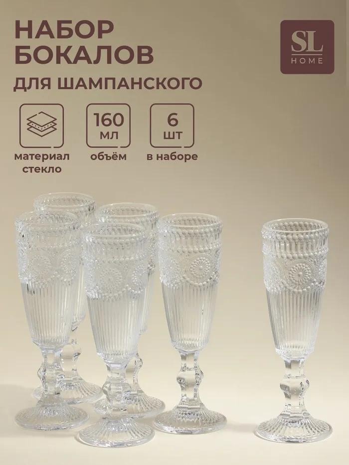 Бокалы для шампанского SL Home «Ларго», 160 мл, 6.7×20 см, набор 6 шт., стекло, прозрачные — Характеристики