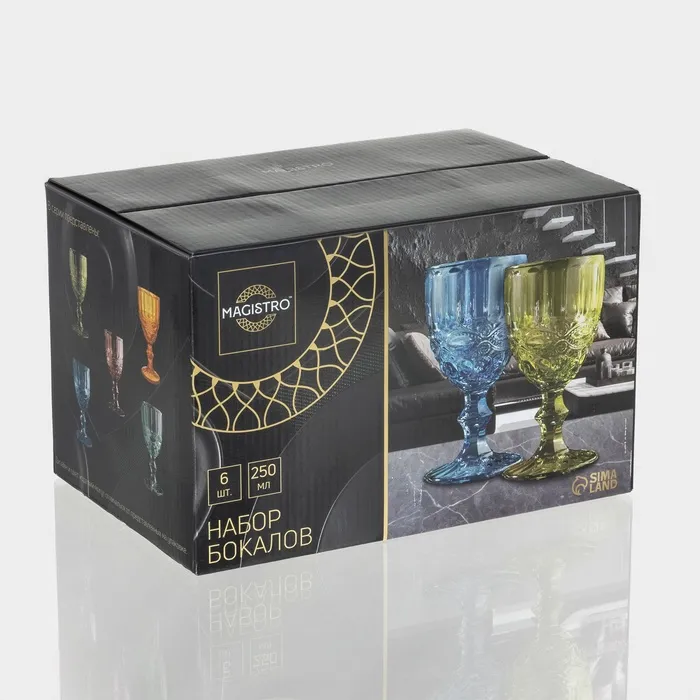 Бокалы для вина Magistro «Ла-Манш», 250 мл, 9×15.2 см, стекло, набор 6 шт., зелёные — Характеристики