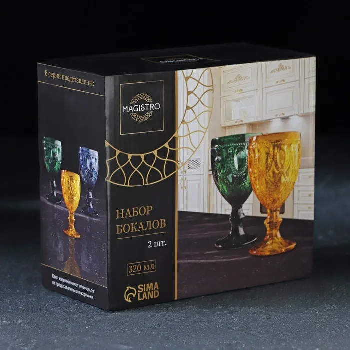 Бокалы для вина Magistro «Варьете», 320 мл, 8.5×16 см, стекло, набор 2 шт., жёлтые — Характеристики