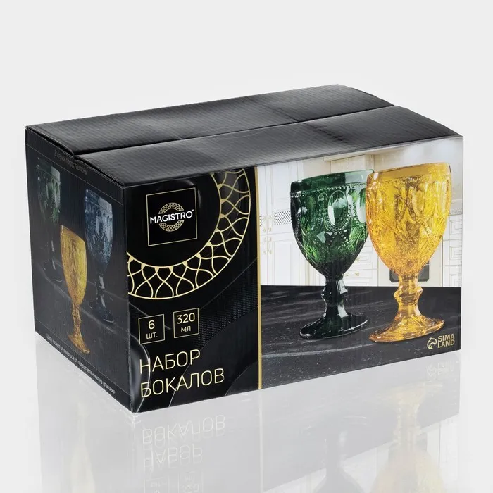 Бокалы для вина Magistro «Варьете», 320 мл, стекло, набор 6 шт., зелёные — Характеристики