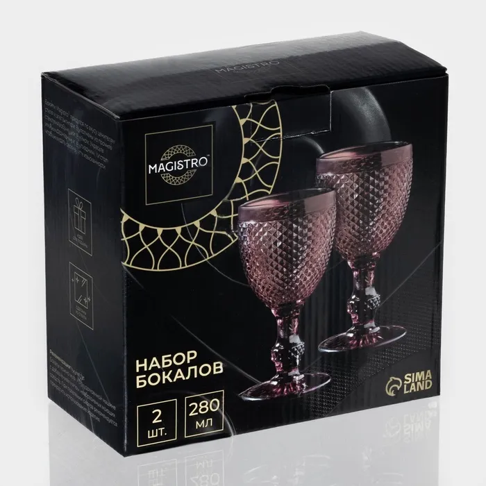 Бокалы для вина Magistro «Вилеро», 280 мл, 8×15.5 см, набор 2 шт., стекло, розовые — Характеристики
