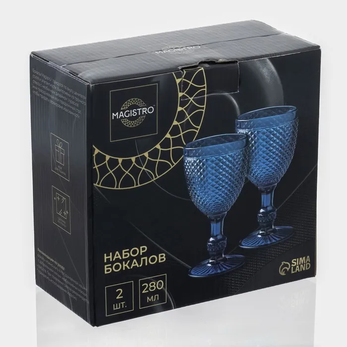 Бокалы для вина Magistro «Вилеро», 280 мл, стекло, набор 2 шт., синие — Характеристики