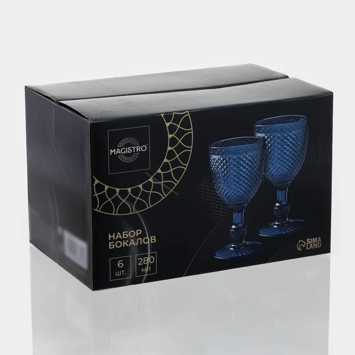 Бокалы для вина Magistro «Вилеро», 280 мл, стекло, набор 6 шт., синие — Характеристики