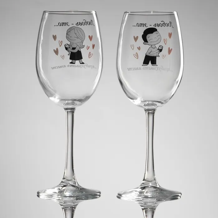 Данный набор бокалов подойдет как для красного, так и для белого вина. Для нанесения рисунка мы используем высокотемпературную деколь, она выглядит на много ярче и контрастней. Она не смывается и не теряет вид со временем. Бокалы будут уместны на любой кухне и любом празднике, хорошо подойдут в подарок близкому человеку, другу, коллеге.
