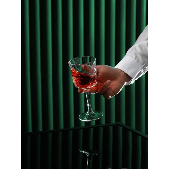 Набор бокалов для вина объёмом 330 мл имеет красивый и оригинальный рельеф. Бокалы изготовлены из прочного и качественного стекла. С такими бокалами напиток будет ещё вкуснее, а подача эффектнее.