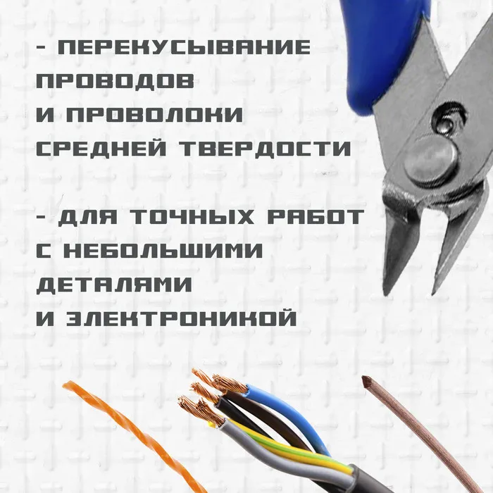 Бокорезы обеспечивают точность и удобство при работе с мелкими деталями. Пластиковые рукоятки обеспечивают комфортный хват, а размер 130 мм позволяет работать в труднодоступных местах.
