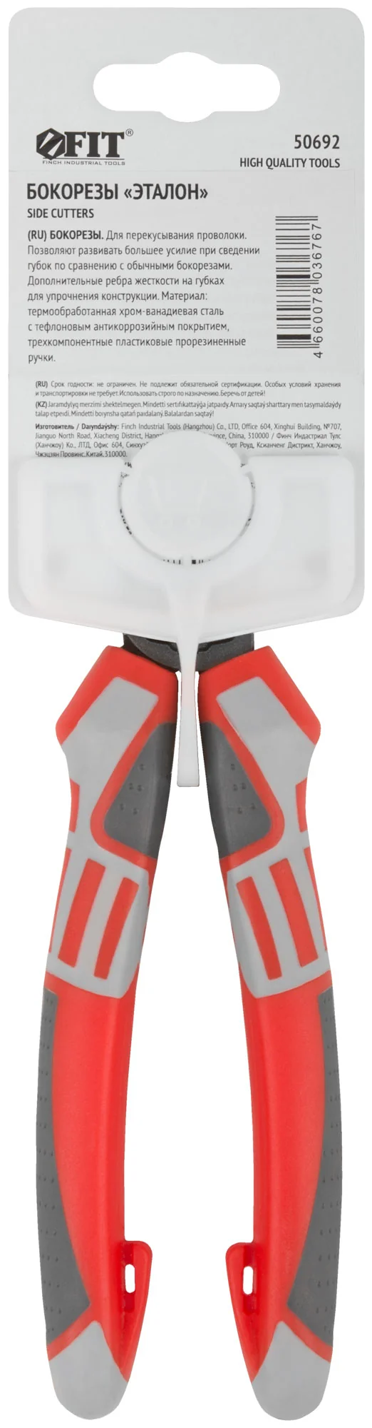 Бокорезы изготовлены из хром-ванадиевой стали, что обеспечивает их прочность и долговечность. Тефлоновое покрытие защищает инструмент от коррозии, а дополнительные ребра жесткости на губках повышают устойчивость конструкции. Трехкомпонентные прорезиненные ручки обеспечивают удобный и надежный хват, снижая усталость рук при длительной работе.