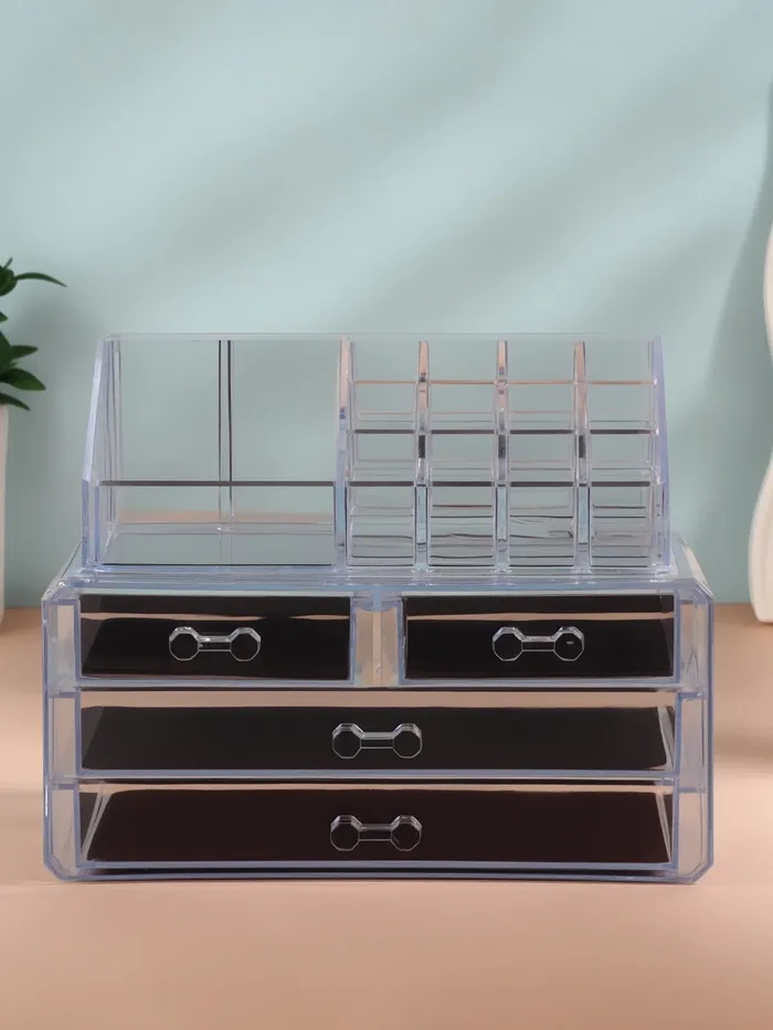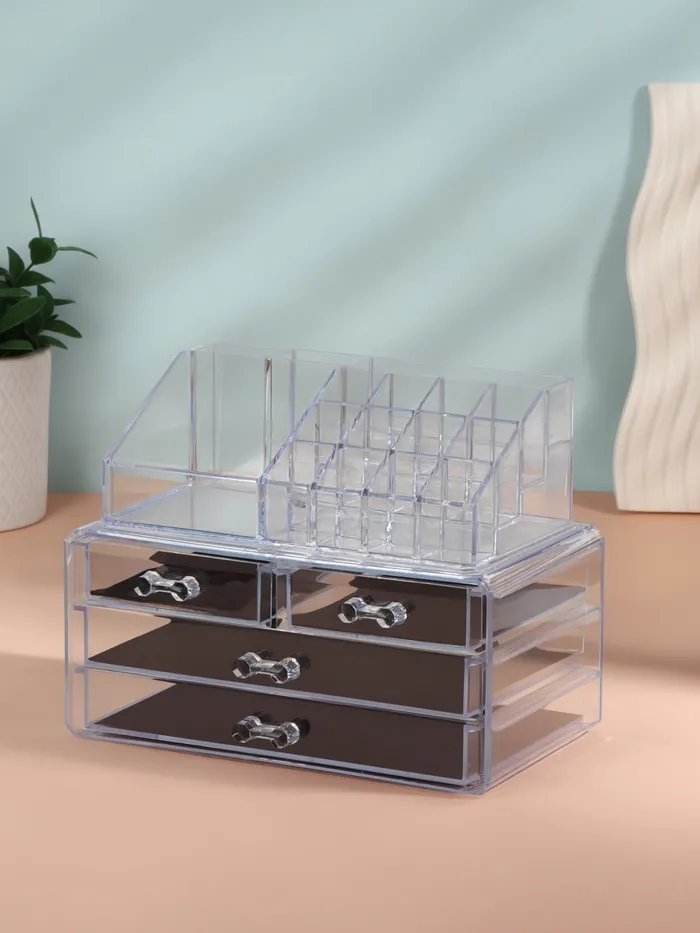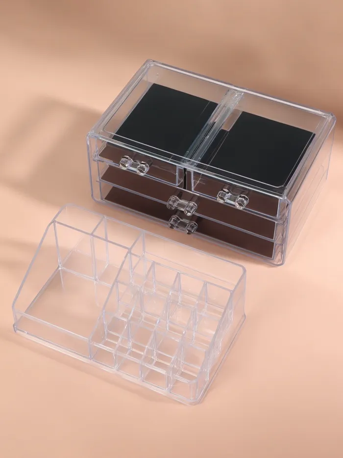 Бокс для хранения косметики, 20 секций, 23.5×14.5×19 см, 4 выдвижных ящика, прозрачный — Характеристики