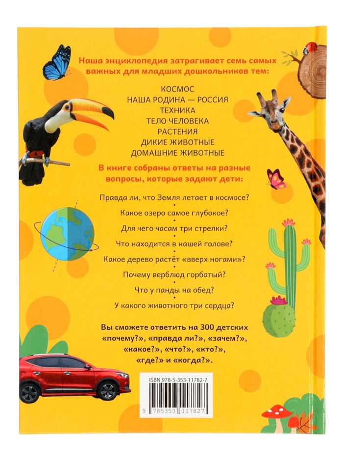 300 вопросов и ответов о мире вокруг: природа, человек, животные, космос. Каждая тема подана так, чтобы ребёнок не просто запомнил факт, а захотел узнать больше.