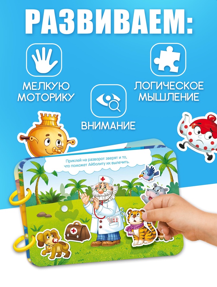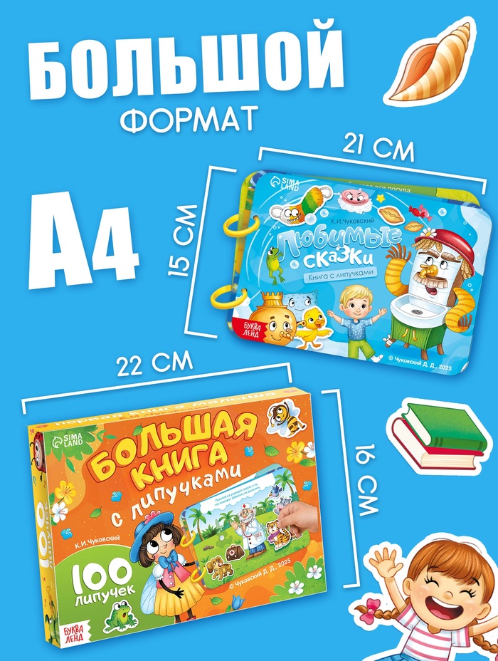 Большая книга с липучками «Любимые сказки», 100 липучек, А5, Корней Чуковский — Характеристики